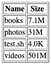 printf '<body><table border="1"><tr><th>%s</th><th>%s</th></tr>' "Name" "Size"
